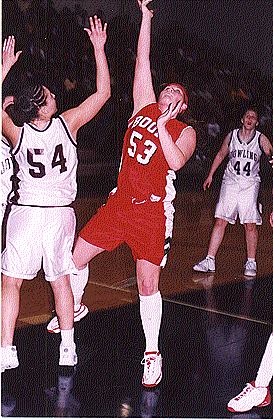 Julie Wittrock, a senior post, scores two of her team leading 14 points. She also pulled down 11 boards and was an integral part of Boone's tourney run past Fort Dodge and Southeast Polk.