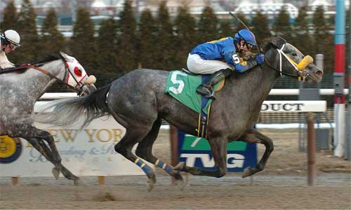 "Dodger" is a really nice filly that is bred to run. Her sire, Slew Skip Seattle, is a Grand Champion in Halter and Racing. Her dam, Relic, is a Champion in Racing and is a daughter of the great War Emblem. She has been blazing speed at her trials. She likes to stay to the front, so it can be a fight on the longer distances to hold her till the end. I'm sure as she matures, she will be able to hold that speed.
