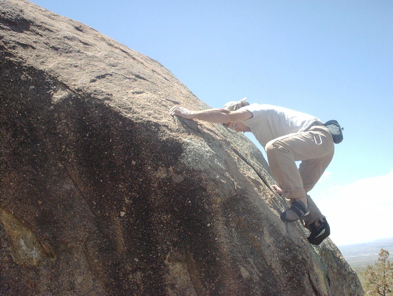 Seth working the mossy slab on King Fuzzie's Harry Back.