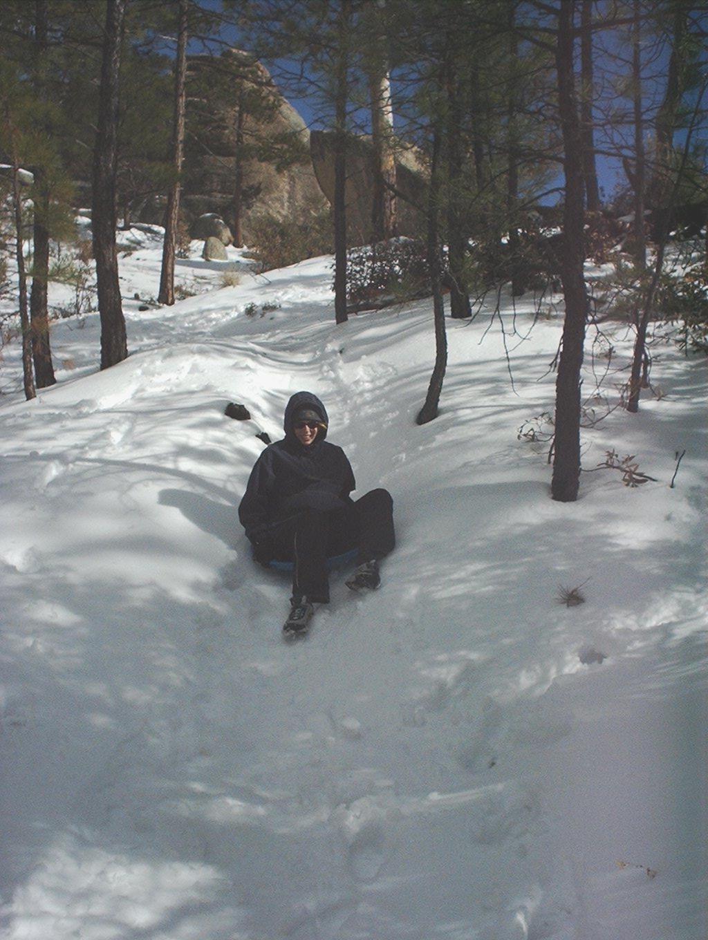 Steph's first sledding experience... she ran into a tree about 10 seconds later!