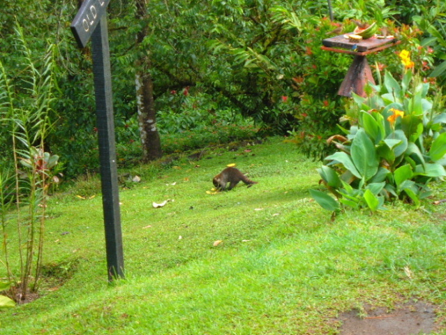 ![]() This is a Coatimundi we saw outside the hotel. Every morning the hotel puts out fruit in the trees and birdfeeders so you can watch the animals while you eat breakfast. |