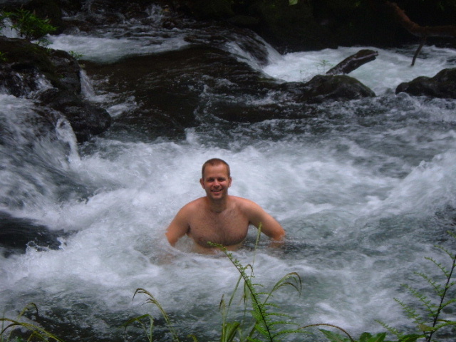 ![]() The hot springs were a river of perfect jaccuzi temperature water heated by the volcano.         |