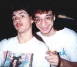 Brian K. was at every Greasy Feces show, and nearly every practice. The band couldn't figure out if he liked their music or simply felt sorry for them. Here he is with his TecmoBowl partner, Jeff Cronk.