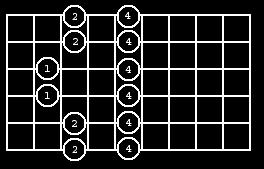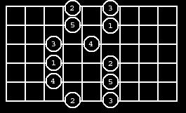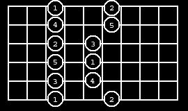 | Minor Pentatonic First Mode 1st b3rd 4th 5th b7th |