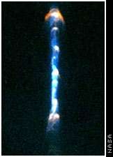 Hubble caught a glimpse of a beautiful galactic veil dance taking place some 1,400 light-years from Earth. The unseen gaseous choreographers are two newborn stars in a tight huddle, while a third star ventures out on its own.