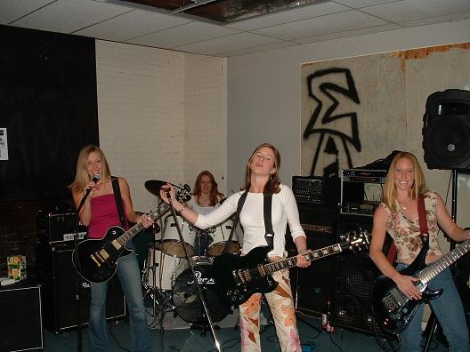 "The Ladios" rocking out to their hit song "Same Boy (Different Name)"