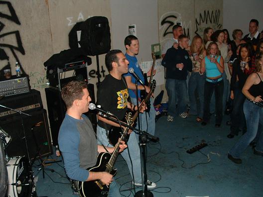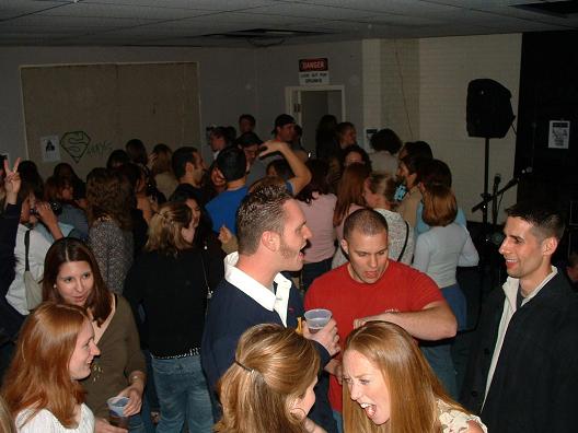 Tim (red shirt) is checking his watch. "Hey weren't The Radios supposed to start 38 seconds ago?"