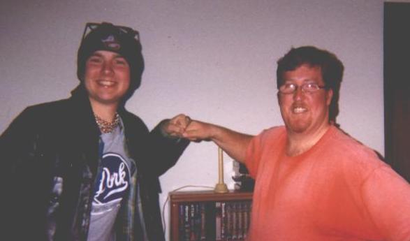 This is a pic of JOhn (Black coat) and his best friend Kent (in the orange) they were best friends in high school starting when John embarrased some guy, By throwing a pizza in his face for trying to get him to make fun of Kent.