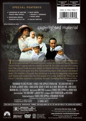 | Francis Ford Coppola took some of the deep background from the life of Mafia chief Vito Corleone--the patriarch of Mario Puzo's bestselling novel The Godfather--and built around it a stunning sequel to his Oscar-winning, 1972 hit film. Robert De Niro plays Vito as a young Sicilian immigrant in turn-of-the-century New York City's Little Italy. Coppola weaves in and out of the story of Vito's transformation into a powerful crime figure, contrasting that evolution against efforts by son Michael Corleone to spread the family's business into pre-Castro Cuba. As memorable as the first film is, The Godfather II is an amazingly intricate, symmetrical tragedy that touches upon several chapters of 20th-century history and makes a strong case that our destinies are written long before we're born. This was De Niro's first introduction to a lot of filmgoers, and he makes an enormous impression. But even with him and a number of truly brilliant actors (including maestro Lee Strasberg), this is ultimately Pacino's film and a masterful performance. --Tom Keogh |