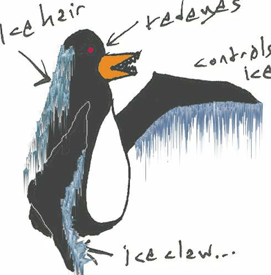 the penguin says "i want u...to join my army of menacing and intimidating minions of doom" but when that penguin ices the world and you're sittin there with your face all iced off and hair all breaking into pieces you'll regret that little "wager" you made on "who will be the number one" cause you'll already be a goner i mean you can't live in a world with ice covering your face all day...frostbite has another meaning when the penguin gets done with you....you have to say to the penguin...