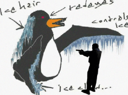 not on my watch...and of course the penguin gains a bunch of weight after eating all your "homeboys" who decided to tag along but hey what is the world comin to when you have to blast down a big fat penguin just to get ends meat and keep that darned ice off your face...i mean..you know if you had that claw in your face you'd be pretty hacked to say the least....5:00am and all is well....maybe i should stop drinking so much blue rush....or maybe not....
