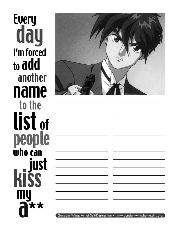 Art of Self Destruction's Heero List...