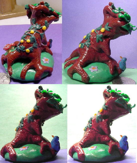 Any Lord of the Rings fan is familiar with Treebeard the Ent. This is another ent, or tree-herder. He was inspired both by Tolkien directrly, and also by my summer job. (I worked for Middle Earth Studios, and actually spent two whole days in an Ent costume. The actual piece title is "And what sort of flower are you?" I think the interchange between bird and ent is charming, even if I do say so myself.