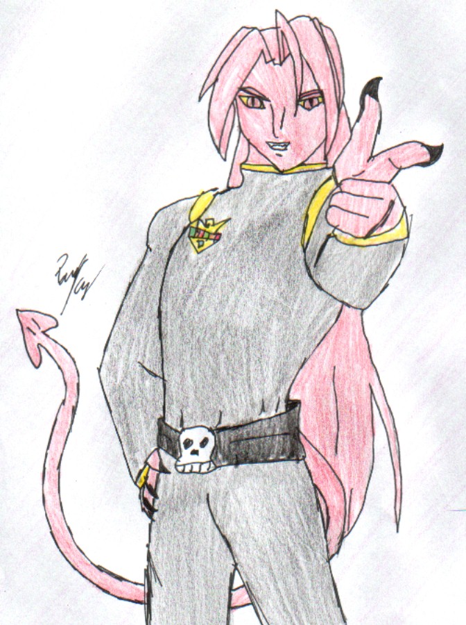 Codename: Powerline Real Name: Fritz Kurtis Angus Heironymos Darkholme Nicknames: Fuzzy, Fizzy, Pikachu, Satan, Cute Little Devil, Rat, Nibbles, Fox, Foxy Place of Origin: Germany Template: Ausslander's Reich/Brotherhood Age: 14 Gender: male Height: 5'9 Weight: 162 Eyes: copper. When in fuzzy form, his pupils are slitted and his whites are yellow. Hair: in human form, his hair is black with burgundy highlights. In fuzzy form, it is blood red. He always wears his hair long, and sometimes in a pony tail. Other distinguishing physical features: In fuzzy form, he, of course, has blood red fur. Also, he has a long spaded tail and fangs and claws. Unlike Kurt, Fritz possesses all five fingers and toes, but Frtiz DOES still walk animalistically, since his feet are shaped that way. Clothes: Fritz is a snazzy dresser. He will almost always wear a nice fitting black uniform. It almost looks like a Navy uniform. The belt will always be semi-wide with a skull buckle. Over his animalistic feet, he wears black boots, but in human form, they are simple black marching shoes. A German Reich pin. Known Relatives: Mother: Raven Darkholme/Mystique, Brother: Kurt Wagner/Nightcrawler Powers/Mutations: Fritz can teleport, like Nightcrawler, but, it leaved behind a wide electric shock, leaving the smell of a popped wire rather than brimstone. He can also control electricity, which travels through his body at will. This can range from static shock to a large electrical blast. Though not a shape-shifter, Fritz IS able to shift into a human form without the aid of an image inducer. History: Unlike his brother, Kurt, Fritz knew all along who his mother was. After a failed attempt to create a perfect mutant with Nightcrawler, Mystique was tempted eventually to try again. This time, with Magneto's help, they created Fritz. Mystique was still shocked at the similar outcome. She was able to give Fritz to a "friend" of hers in Germany. Frtiz saw his mother often and is very fond of her. Fritz was a prodegy, seemingly intelligent and over-mature {most the time} and was homeschooled until his first mutant ability imerged. Though not a shape-shifter, he was able to take on a human form. He attended classes in self-defense, combat and other fighting skills courses. He is trained in the use of weaponry and is a superb pilot. After his electric mutations emerged, Mystique returned to Germany. Fritz believed it was to comfort him, as the electric ability combined with the teleportation was very painful. After some training, the pain was almost non-existant and Mystique finally asked Fritz to come to America to train in her group. Fritz did so, but, he also created a band of mutants of his own. Most of them were simply international, as he was a whiz on the internet and computer systems. He was able to form a group of mutants with superb expertise in combat, weaponry and useful talents. Personality: Semi-Dark. Fritz's mood changes quicker than a jack-rabbit on a date. Sometimes he's so serious it would make a corpse scream and sometimes he's so goofy, he puts Kurt to shame. He believes he is a much better, stronger and more efficient version of Nightcrawler and when the two get together there is almost ALWAYS some kind of conflict. Also, unlike Kurt, Fritz is extremely proud of his appearance and abilities. Favorite music and pastime: His favorite musician is Highlord, but he also listens to Moby, Techno, Musicals/Classical, Pop Will Eat Itself {yes that is the name of the group}, Yanni, Weird Al, and hymns. His favorite pastime is strumming on his nifty electric guitar, reading poetry and classics, acting, and drawing. A Quote: " I'm so adorable and charming! I make me wanna kneel down and praise!" Special non-mutant talents: Fritz can play an electric guitar, but he can also play the flute, piano, and violin. He has been wanting to take up the saxaphone. He is a superb artist and has often thought about using his sketching skills in some sort of career. Quirks, limitations, abilities, and other weird stuff: Fritz is able to teleport other people with him....but it will hurt like hell for the person teleporting with him. The more he carries the louder the pop and the more painful it is for the traveler. Imagine one heck of a static shock. As states, Fritz has very sudden mood swings. Fritz is SUCH a Mama's Boy. Anything Mommy wants, Mommy gets. Sometimes, he can be a real pest.....but only when his mood is super wild. He tends to feed off the mood of those he's around. Did I mention he'd a real Mama's Boy? His hero is Pietro/Quicksilver. Fritz also has feline habits, such as purring and rubbing his face against things and curling into a ball in warm places. He also hisses when he's surprised and sometmes he'll let out a meow. He is desperately trying to stop these habits. It's the only mutaiton he has that he's ashamed of. It was cute when he did it for Mommy as a baby...but not it's embaressing. Back Next Character