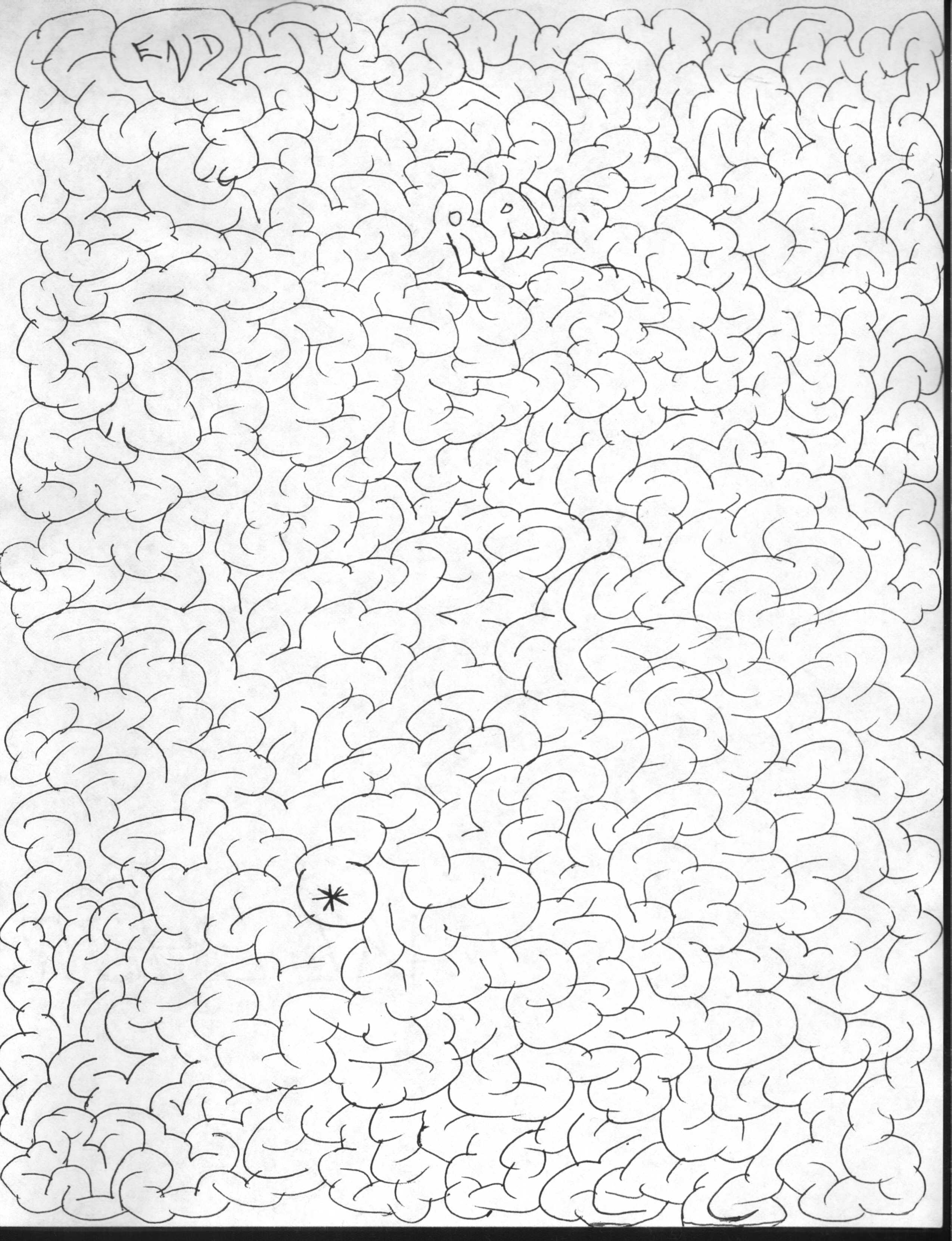This is the CURVY maze. These are the easiest maze's to make. They take about 30 minutes, if you are drawing non-stop, with a good pen and no mistakes. I think you should wait for the page to load, which might take a while(The pic is 693 kb, kind of small). After the picture is done, you should copy it and save it on your computer, so you can do it there. It is very difficult to do on the internet, since it is much larger than the screen. Once you open this in a photo program, go to print preview and click on "size to fit", then you can print it, the proper size. If you decide to do this, try to time yourself and keep count of your wrong ways into dead-ends. E-mail me and let me know, so I can make even more challenging maze's. See, the pic SHOULD be done loading by now.