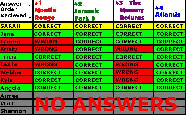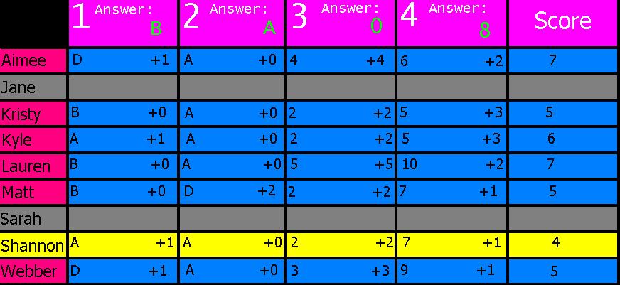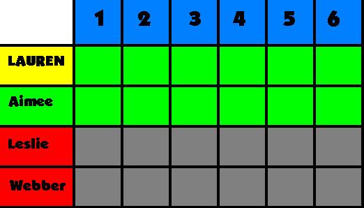 Leslie completed the challenge first. Names are in order of when Big Brother received them.