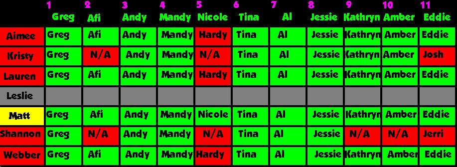 pairings 2, 3, 4, A, B, and the final were all ties. Each houseguest received 3 votes each, but the person who sent it in first got to advance. It proves to be a House devided.