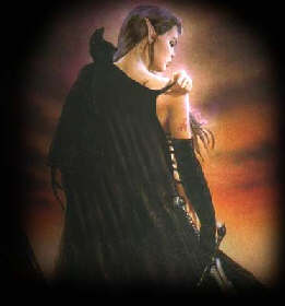 "The quickest way to a man's heart is through his back." The young 21 year old Lady Chantal Minite-Morrow stands at about 5'10" with long ebony locks that sweep the back of her knees and brilliant emerald eyes that glow like no others. She has a light complexion and delicately shaped elven ears that she tries to conceal most of the time. She is thin, but not too thin or bony. She often seems to be shy and quiet but anyone that really knows her also knows that she's got a nasty temper and is a dangerous seductress. Her weaknesses are her curiosity and her love for the drink. Anyone that is very close to her would notice a small scar in the left corner of her lower lip. Her advantages are a resistance to psionics and the ability to transform into her demonic bloodcloak form. She also has battle rage. However, she lacks confidence and often hesitates. Chantal is a unique creature indeed. Her mother was a human and her father was a drow elf noble. This is why she ages like a human. Her mother died during childbirth and she was raised among the drow in Abaethaggar to the house of Arkenhheld. Although she was an outcast among her people because she carried few drow characteristics, she was forcefully trained in their beliefs and ways until she was five years old. However, for many years there was a civil war in the Underdark, land of the drow. Chantal's town was destroyed and her family murdered. Luckily she was able to flee, claiming to be an elf. She spent years wandering and living off of the land until she was fifteen. While hunting for food she met an old gnome that took her home with him to his family and cared for her. She was adopted and learned common English. Five years later the old gnome died and his jealous wife packed her things and sent her out into the forest to start a new life. She built an underground cottage at the edge of the forest, a few miles away from a small tavern named the Dungeon. Her first time in the Dungeon she met the dark lord Destined Hate, who offered to be her mentor and train her in his ways. He worked with her and even gave her some of his own dark blood, as a gift, to transform her into a half-demon and give her strength and power. Another person of pertinence she met at the Dungeon was the Lord War of the H.O.A. and his son Lord Destruction. Chantal fell in love with Destruction almost immediately and it wasn't long before they were together. She'd wanted to marry Destruction but things didn't work out as planned. In Destruction's long term absence she grew fancy for a human soldier, Lucas Lionheart, and became pregnant with his child. However, she'd decided to remain with her fiance. The child was never born but when Destruction returned he was angry and left Chantal.Even though she still loved him, she was too pig-headed to admit it. She began to search for the human soldier once more. Then one night, an elven woman followed her back to the Fountain of Foul Blood Arena and bound Lady Chantal within magical chains for unknown reasons. Unable to tell Lucas of her feelings, she took on a new lover and began to make what she could out of her sheltered life within the arena. She was reunited with her drow half-sister and freed from her chains by Lord Overon Minite I, and was forced to an agreement of marriage. Her marriage to Overon gave her rulership over the City of Dae Kalina, and after a long war, dictatorship over the elven city of Avalon. She ruled Dae Kalina through her Fountain of Foul Blood Royal Guard, lead by the courageous and fearless General Drago Von Westfallen. Not only was she protected by her Royal Guard, but also by a mercenary named Mulciber Vralchim, who came to serve her as a gift from an unknown potector. Chantal's marriage to Overon rapidly fell apart as he was a cruel and abusive husband. He put a great deal of efforts toward having her assasinated, none of them sucessful. In fact, the last man hired to take her life was the handsome Captain Morrow. She instantly fell in love with the dashing Pirate and his lifestyle. Meanwhile, her enraged husband found himself locked away in an elven prison within his homelands of Avalon, dwelling upon his failures. Several months later Chantal heard word that her husband had been killed and her dear friend Ian Clearwater performed a divorce ceremony right on Captain Morrow's ship while at sea. Days later Chantal found happiness again, this time married to the pirate known as Captain Morrow of the Moonstar. Since then the two of them have bore their first child, Katianna Morrow. (This is her sister, Joi.) Thank you for visiting my page at Angelfire. Please come back and visit again and don't forget to check out my other pages at https://www.angelfire.com/rpg/chantal/index.html!