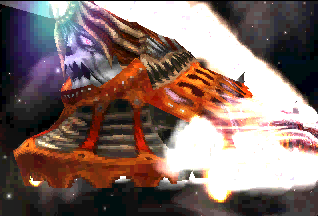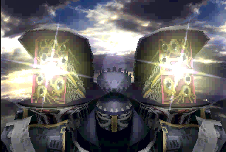 In Battle:You'll see thousands of clouds with a dark figure flying through them. The camera comes closer and we see Bahamut's wings spread out madly flying towards.....you're enemies. Once there his wings spread even wider and he opens his mouth to shoot out his Mega Flare attack.(non-elemental)