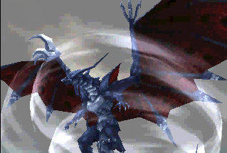 In Battle:Bats fill the screen as a black hole appears. Diablos emerges and plunges his hand into the black hole. He then brings his hand down and throws the black hole (now a ball) at the enemy. (non-elemental)
