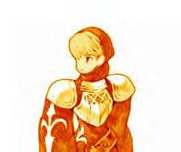 A warrior takes sword in hand, chasping a gem to his heart.