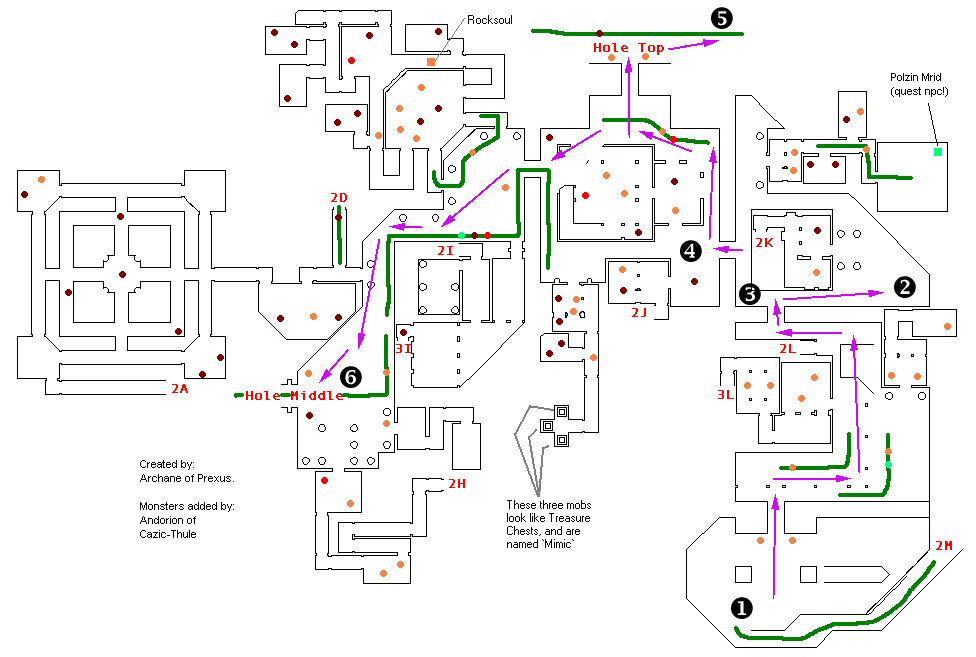 Disclaimer: Far too many people to list were involved in gathering this information but if you see "Society of Shadows" beside their name they were probably involved. Also, the original maps are pulled off Allakhazam's Site and were originally done by "Archane", also from Prexus. The extra information and path lines were put in by me to make things easier on those who want to learn what we've already learned and to help Society of Shadows on other raids into this zone.