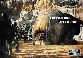 Arachnids colonize by projecting their spoor into space. Upon contact with a suitable planet, the spoors germinate and hatch a Queen, which lays eggs that produce the appropriate number and ratio of Warriors, Hoppers, Tankers, and Plasma Bugs. Initially, an underground network of tunnels, living chambers, and storage areas are created. When the primary nest or colony (called "Bug Towns" by the MI) is adequately established and consolidated, Warrior and Hopper scouts are dispatched to seek out other life forms and/or suitable colonization sites. If life forms are found to present a possible challenge, the colony moves several thousand Warriors, supported by Hoppers, Tankers, and Plasma Bugs, to a position where the attack force is undetected but within effective striking range. A Brain Bug may accompany the force to direct and control. Warrior and Hopper scouts continue a covert reconnaissance until the Brain Bug decides the time and direction of attack. Combat Assault Tactics Attacks are carried out in three waves. First, tunnels are laid underneath and surrounding the target areas allowing Warriors and Tankers to attack from beneath the defenders position. Second, a swarm or wave of several thousand Warriors moving at top ground speed executes a frontal attack on the defender's positions. The objective is to overwhelm and overrun the defenders. At the height of this attack, at the peak of contact between the two forces, the tunneling Warriors and Tankers emerge in the midst of the defenders and commence an aggressive attack. Concurrently, Hoppers launch an aerial assault. The combination of surprise, overwhelming frontal charge, aerial attacks, and attack from below via tunnels is devastating to the unprepared. Which is a reminder to all Infantry of the importance of constant preparation. Although the Warriors and Hoppers kill most every living thing in their path, the Arachnids are known to take prisoners. Leaders of the opposing force are sometimes targeted and taken to the Brain Bug where interrogation takes place via brain matter assimilation. Strategic and tactical direction is believed to be conducted by a Brain Bug who remains safely in the rear until the tide of battle turns in favor of the attackers. Then she is moved to the battle site where prisoner interrogation and final annihilation of the defenders takes place. At this point either the force pulls back to its pre-attack position in anticipation of possible counterattack or they consolidate their newly won territory and commence construction of a new "Bug Town."