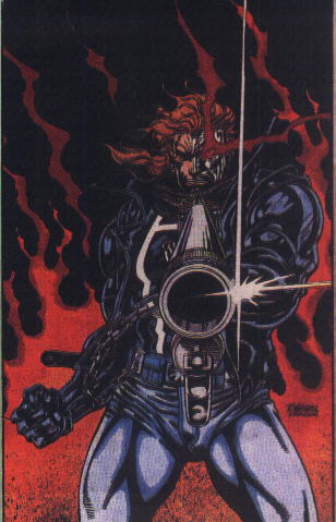 John Blaze was orphaned when his father, the star of Crash Simpson's Daredevil Cycle Show, died attempting to defy the laws of gravity and physics. Adopted by the carnival's proprietor, Crash Simpson, the youngster mastered the tricks of the motorcycle-stunt trade in short order. Years later, he learned that his foster father was dying of a rare blood disease. Acting on his longtime preoccupation with the occult, Blaze recreated an ancient ritual to summon the demon Mephisto and bartered his immortal soul for a miracle cure. Blaze's sacrifice of self was for naught: A rejuvenated Crash plummeted to his death in the midst of the most ambitious motorcycle stunt of his storied career. Having deceived Blaze into forfeiting his soul under false pretenses, Mephisto materialized to claim his prize. But Crash's daughter, Roxxane, expelled the hellspawn from the mortal plane by reciting a banishment spell she had gleaned from one of Blaze's books. Although unable to take possession of his intended bounty, Mephisto grafted the essence of the demon Zarathos to Blaze's body. Thereafter, the melding of spirits would manifest itself every nightfall in the form of Ghost Rider, avenging Angel of Death. For years, Blaze and Zarathos wrestled for control of Ghost Rider, alternately asserting authority over the Spirit of Vengeance. All the while, Blaze struggled valiantly to prevent the demon from wrecking havoc. Eventually exorcising Zarathos, Ghost Rider's human half bought out the stunt show he had called home as a youth and married Roxxane; they had two children.