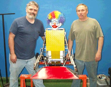 The Conquering Clown has been chosen by a scout to appear in Robot Wars, London. there were only 26 robots chosen so all robots going to london will appear in Robot Wars, American Devision. Robot Wars has a contract with TNN, and will be showing these fights next season starting on August 20. We signed a contract to keep the outcome of the filming a secreat untill the shows air, so I'm sorry, I can't tell you what happened.