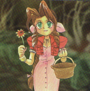 Aeris Gainsborough. A mysterious flower merchant and an incredibly beautiful woman. She has a natural talent for magic, and has a link directily with the planet's feelings. She is the last of the Cetra, better known as The Ancients, a race in tune with all of the planets energy. The race was wiped almost completely out by the Crisis From the Sky.