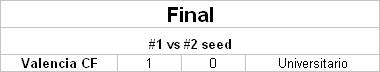 | Alright so these legs were more of a disaster....well that's how wacky all of this has been lately. Alright, so Cienciano were humiliated one more time but at least left with one goal of honor while Valencia CF got their game on and defeated a demolished Newcastle Team. The final match will be played on Friday: Miami Fusion vs Valencia CF |