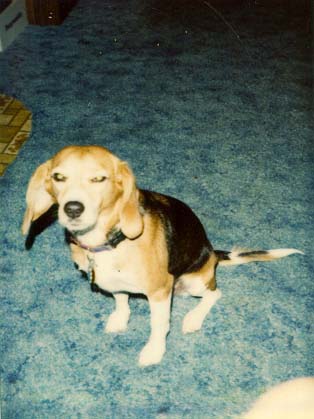 This picture was taken while she was just a pup. The lighting's all bad and she looks a bit mad, but she never was a mean dog to anyone, not even a cat.