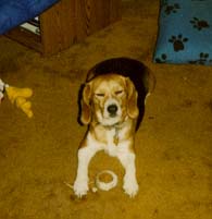 This one was taken in her midlife. You can see that we provided her with a ton of toys and chewtoys. It reminds me of her first Christmas. We had bought her a little rawhide basket filled with chewtoys. On Christmas morning, she knew what was hers as she walked in, picked up her basket in her mouth and wandered off. She loved her toys and I never tired of playing tug rope with her.