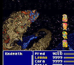 Fight the Void: Exdeath's first ULB, gained from experience. The poor enemy is a innocent bystander to a war between Exdeath and the Void.