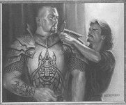 Swords hung on the walls, spears in the cabinets, and a pile of shields in