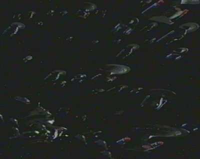 On Stardate 54167, the Federation Starship Ivanhoe observed a fleet of some forty warships emerging from a transwarp conduit similar to those used by the Borg. The ships, identified as belonging to the Hirogen — a nomadic race native to the Delta Quadrant — immediately moved to engage the Ivanhoe, which retreated toward the nearby Wolf system and Starbase 565. Over a dozen ships from three task forces were mobilized to the starbase to combat the attack. Unfortunately, the Ivanhoe never reached safety, as she was overtaken after being forced to reduce her warp speed and lost with all hands.