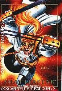 Most of Shatterstar's life has been quite a mystery to us. So far, since New Mutants #100, we have known Shatterstar just as a warrior-born from one hundred years in the future. He was trained from birth to be a warrior and to fight for the entertainment of the masses in the world ruled by the insane Mojo V. Shatterstar was a member of the Cadre Alliance (a group of rebellous warriors on Mojo's world, seeking an end to the enslavery of men for battle entertainment). While facing defeat at the hands of Mojo V and his accomplice Spiral, the Cadre Alliance sent Shatterstar back through time and space to the current timeline in search of the legendary X-Men to aid him in the overthrow of Mojo V.In his trip back through time, instead of finding the X-Men, he ended up finding X-Force, a group of mutants led by Cable, a man who was also from the future. Cable promised him that they would help him overthrow Mojo in exchange for his services with X-Force.Shatterstar quickly proved his worth. He proved to be a very devastating and talented warrior, exceptionally skilled in the art of combat with his two double-edged His mutant powers to resonate vibratory shockwave through the metallurgic properties of his sword makes him an extremely dangerous mutant as well. He tirelessly trains to keep himself in top physical condition, for it is the markesmanship of a true warrior in his eyes. But what he gains in being a warrior, both in mind and body, he loses in personal human emotions.