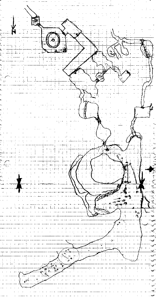 Behind the hidden door was a natural passageway through the rock. The party went down this passage until they came to large grotto filled with water. Slick moisture dripped ran along the walls and dripped from the ceiling. Eerie noises echoed from the water droplets landing in the water. Testing the depth they saw that it was only a couple feet deep. Cebo went in first sticking close to the southeast wall and prodding with his sword. A short way into the pool his feet slipped and he almost slid into a much deeper portion of the pool. With the water over his head he returned and Eldon, using spider climb, went across with a rope. With the rope attached across they stared crossing the deep pool. After a couple had crossed there was suddenly a commotion as four shambling zombie-like creatures crawled out of the water and attacked the one crossing. Rhino's attempts at turning the undead failed so the party members on both sides of the grotto attacked and made short work of the creatures. After this the party discovered that the water was only deep on one side of the grotto and so the rest safely crossed. At this point it was decided to end the game for the night.