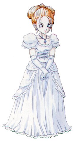La esposa del Rey Guardia en el 600 A.D.. Como puedes ver, físicamente es muy parecida a Marle (Ya que es su antepasado), pero muy diferente en carácter, ya que Leene es gentil y tranquila.