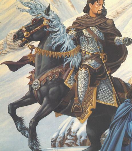 Distinguishing features: His nose is misshapen through being broken, by his childhood friend Kalten. Steely sinew and muscles are hidden by the heavy Pandion armour. Not the most reasonable of men.