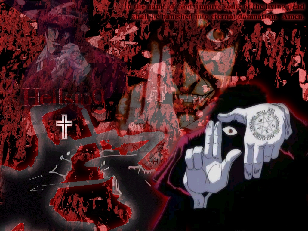 Characters: Alucard, Alexander Series: Hellsing Comments: Just re-fell in love with this series one day and decided I needed a change from my blue/gray Squall wallpaper...wanted to go back to my black/red style. Took me a while to create the blood in the background, but I'm happy with how it turned out. |