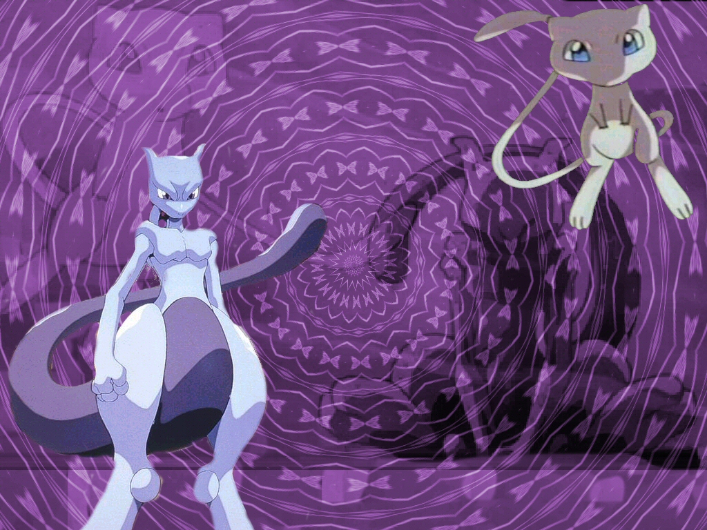 Characters: Mew & Mewtwo Game: Pocket Monsters/Pokemon Comments: Another request from Shawn. I love the background image, very trippy. I kept with the purple motif not only to match their colors, but also because in the Pokemon world, purple has been connected with psychic elements. |