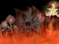 Characters: Sephiroth, Fuu, Hikaru, Umi, and an unknown girl Series: Final Fantasy 7, Magic Knight Rayearth, and Kaseki no Uta Comments: I like fire...and just started having fun with the Sephiroth and KnU images (since they were firey to begin with). |