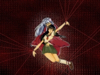 Characters: Inu Yasha & Kagome Series: Inu Yasha Comments: I saw this doujinshi cover and knew straight off that it had to be made into a wallpaper. While the art isn't as accurate as I normally like doujinshi to be, just the overall image is so amazingly cool. All I really had to do was lengthen the ropes to fit to the edge, but the background work was the fun part. A lot of filters used on this one, including my favorite mosaic ones. |