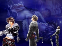 Character: Squall Series: Final Fantasy VIII/8 Comments: I hated my first Squall wallpaper, and was in a blue/black creative mood, so I made this. Some fanart, some doujinshi, some official art, and a lot of layers and fades, lol. |