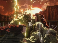 Characters: Meier Link & Charlotte Series: Vampire Hunter D: Bloodlust Comments: I just loved the design of these two characters, and this scene was so touching I couldn't help but make a wallpaper. It's a bit grainy because my DVD-ROM captures a bit smaller than screen resolution and I had to enlarge the background. |