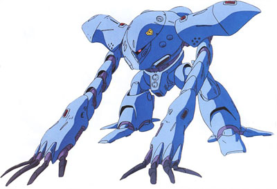 Developed in conjunction with the high-performance Zugock-E, the MSM-03C Hygogg is an attempt by Zimmad to continue their partnership with MIP as the premier Marine Mobile Suit manufacturers for the Zeon armed forces. The Hygogg is a drastic improvement over the original Gogg design. Gone is the huge, portly body and stomach-mounted cannons; instead, these have all be replaced by newer, more modern components. The Gogg's gigantic torso, original intended to help provide protection against crushing deep-water depths, has been scaled down into something more resembling a traditional mobile suit. In doing this, it is now capable of waist rotation, giving it extra firing arcs. The Gogg's nearly square and blocky legs have also been scaled down into slimmer, more maneuverable versions, equipped with large "toe" fins for extra maneuverability in water and added stability on land. Finally, the Gogg's belly-mounted weaponry has been replaced and added elsewhere on its body. For underwater cruising, the Hygogg's huge shoulders allow it to conceal its arms from water flow, greatly decreasing drag. Its segmented arms can also retract into themselves, reducing their surface area for prolonged aquatic operations. They are also extremely useful as melee weapons; each is equipped with four claws, and the segmented design allows them to be used much like the Gouf's heat rod in a bashing role. Though it is no longer capable of deep sea missions, it is much faster and more maneuverable at shallower depths, as well as on land. The water-cooled reactor has been replaced with a standard model, giving it unlimited sortie time. Finally, its weapons recieved a fierce overhaul. The Gogg's