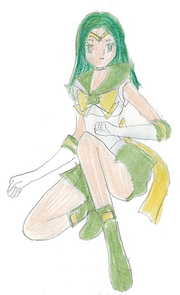 Physical Description: She has hair color like sailor Pluto’s and matching green eyes. Her body is much like venus’s. She’s about 5’1/2” but wears tall shoes making her much taller. Fuku Description: It’s like the Super Sailors. Her color is jade, same with her skirt. Her bows are yellow and her back one goes just above her knees. Her brooch and her choker are jade and her choker has a yellow star on it. The glove circle things are green but the middle one is yellow... Her boots go to the middle or higher of her calf and they’re green with a yellow strap and buckles at the top. Her tiara gem is jade too. Part Three: History 101 Birthplace: “The gem Matrix" History: Her family has a lot of money but not as rich as Shuran. She is an only child so she’s had every thing she’s ever wanted. As a child she’s gone to the same school as Shuran but they don’t get along and they’re in totally opposite cliques so Kenun barely even knows her. Current Situation: She’s 15 and she loves to go riding and goes about as often as she can. She’s very spoiled and sheltered so not too much has happened to her… yet. Part Four: Personality Check Personality: very stuck up well not mean stuck up but she lets you know that she’s better than you no matter how hard you try. However she’s not mean and wont go calling you bad names, (only the other Senshi). Strengths: Horseback riding, and drawing. Weaknesses: Not being able to get something she wants. Quirks: She’s a spoiled brat. And doesn’t quite understand not having a lot of money. Thoughts: The Alternate Senshi: “they need an attitude check.” The Gemstone Senshi: ”We kick butt all the way man!” The Reality Senshi: “stop your moping.” The Weather/Elemental Senshi: “Control freaks!” The Hallucination Senshi: “Whoa, are you there or are you just a pigment of my imagination.” The Oracle and The Papillion: “Good just give us the flippen mask!” The Butterflies: “I wish I had wings.” Okokuno Fushubi Kurai: “You bad, bad, bad, naughty little people” Part Five: To Battle! Henshin Item: a bracelet with a jade stone on it. Henshin Phrase: Jade envy, make-up! Henshin: She tap the jewel on the bracelet and it begins. Green crystal jewel things start flowing around her. She puts her arms above her head and slowly spinning on one foot. The jewels then get faster and with a bright green flash her transformation is done and she poses. Weapons: sword Attacks: Basic Move: Just goes after them with the sword. semi strong room: (equivalent to Venus’s lovely kiss) “Sword of envy!” She yells this and her sword gets much stronger and charges at the enemy. Highly Offensive, Semi-Kamikaze Move: Green Sword, she yells that phrase and her sword grows green but the energy is sucked from her tiara however it sends a powerful blast at the enemy. Kamikaze Move: “linked Sword” Yelling this her gem on her tiara goes into a special spot on the sword and Jade collapses (she basically dies) but her sword destroys anything Jade desires to die. She hasn’t used it (cause she’s alive) yet but might when the time comes. |