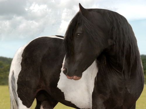 Obsidian is a Gypsy Vanner horse, he is male. This is basically what he looks like...this is a pic of his left side.