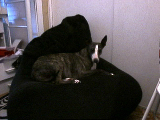 He has two dogs, Jesse(a whippet in the top pic) and Brandy (A bullterrier/silky ). Which are both pictured above ^^